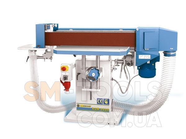 Главный привод задействует двигатель мощностью 3.0 кВт. Он может развить обороты до 2840 в минуту. В работе станка Stomana KSM 2600 (KSM 2600) используется лента шириной 150 мм. Скорость движения ленты, обеспечиваемая приводом, достигает 20 м/с. Отдельно поставляется расширение шлифовального стола с роликами и поворотная линейка для более точной и сложной обработки поверхностей.