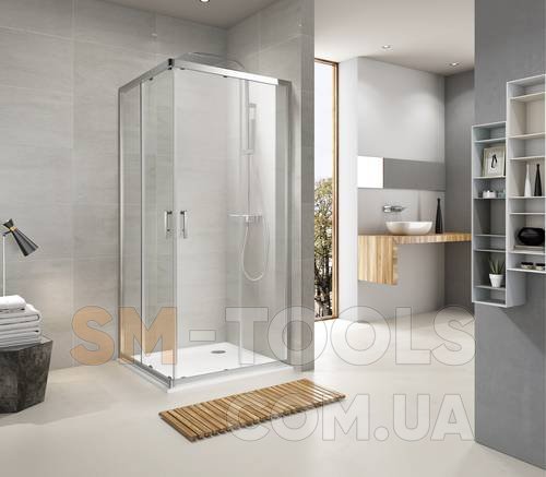 Квадратна кабіна GRACE (G90SG) серії Aqua Line складається із 4-х частин: двох нерухомих стінок та двох розсувних дверей на подвійних роликах.