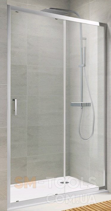 Душові розсувні двосекційні двері TD120 доступні в прозорому та матовому склі, розміром 1200x1900 мм та товщиною скла 6 мм, з хромованим профілем. Висота - 1900 мм
