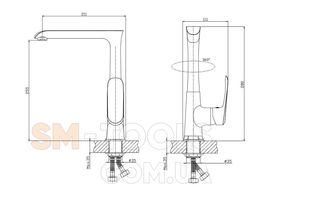 ОписПредставлена тут модель одноважільного, врізного кухонного змішувача Aqua AQ0500 від Koller Pool, оснащується керамічним картриджем від іспанської компанії Sedal, аератором від німецької компанії Neoperl і має поворотний вилив довжиною 21.1 см. Змішувач встановлюється на один отвір з підведенням 1/2".