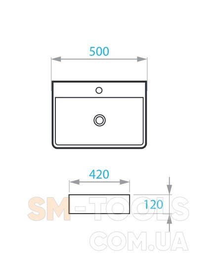Керамічний умивальник KOLLER POOL серії KVADRO KR-0500M-WB з габаритними розмірами (ВхШхГ) 12х50х42 см має рівні тонкі стінки, отвір під змішувач та перелив.