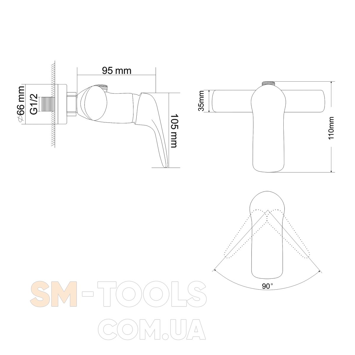 Смеситель для душа RJ FLORA, хром 35 мм (RBZ072-5)