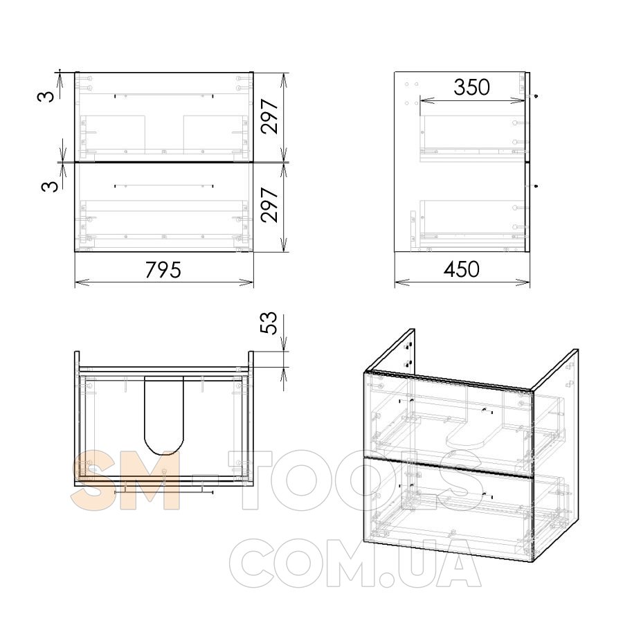 Описание Комплект мебели IMPRESE VALTICE 80см, серый: тумба подвесная, 2 ящика + накладной умывальник арт i11042D (f3212G)