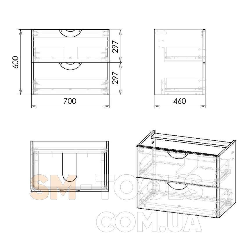 Описание Комплект мебели IMPRESE NOVA VLNA 70см, белый: тумба подвесная, 2 ящика + накладной умывальник (f32703W)