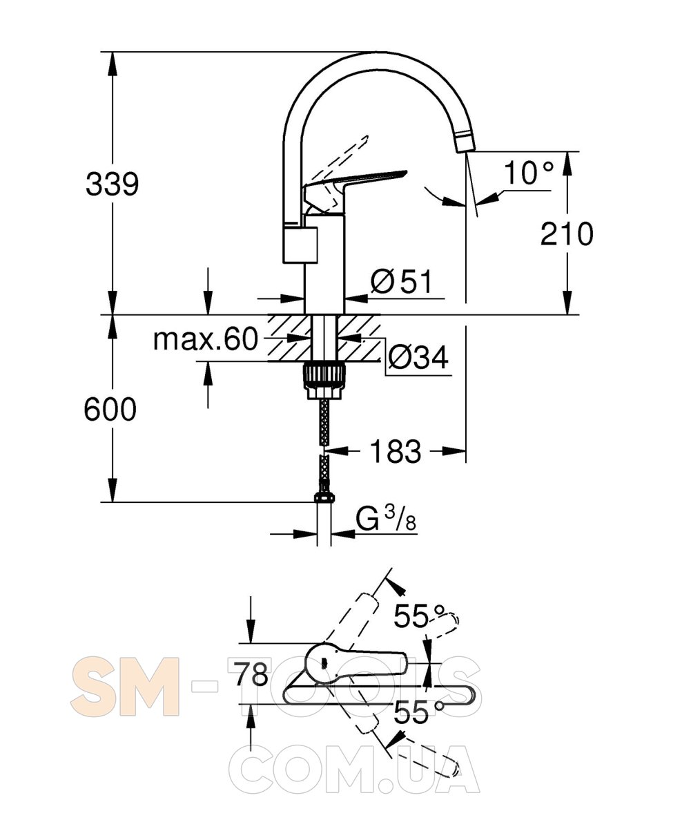 Описание Однорычажный смеситель для мойки Grohe QuickFix Start (304692430)