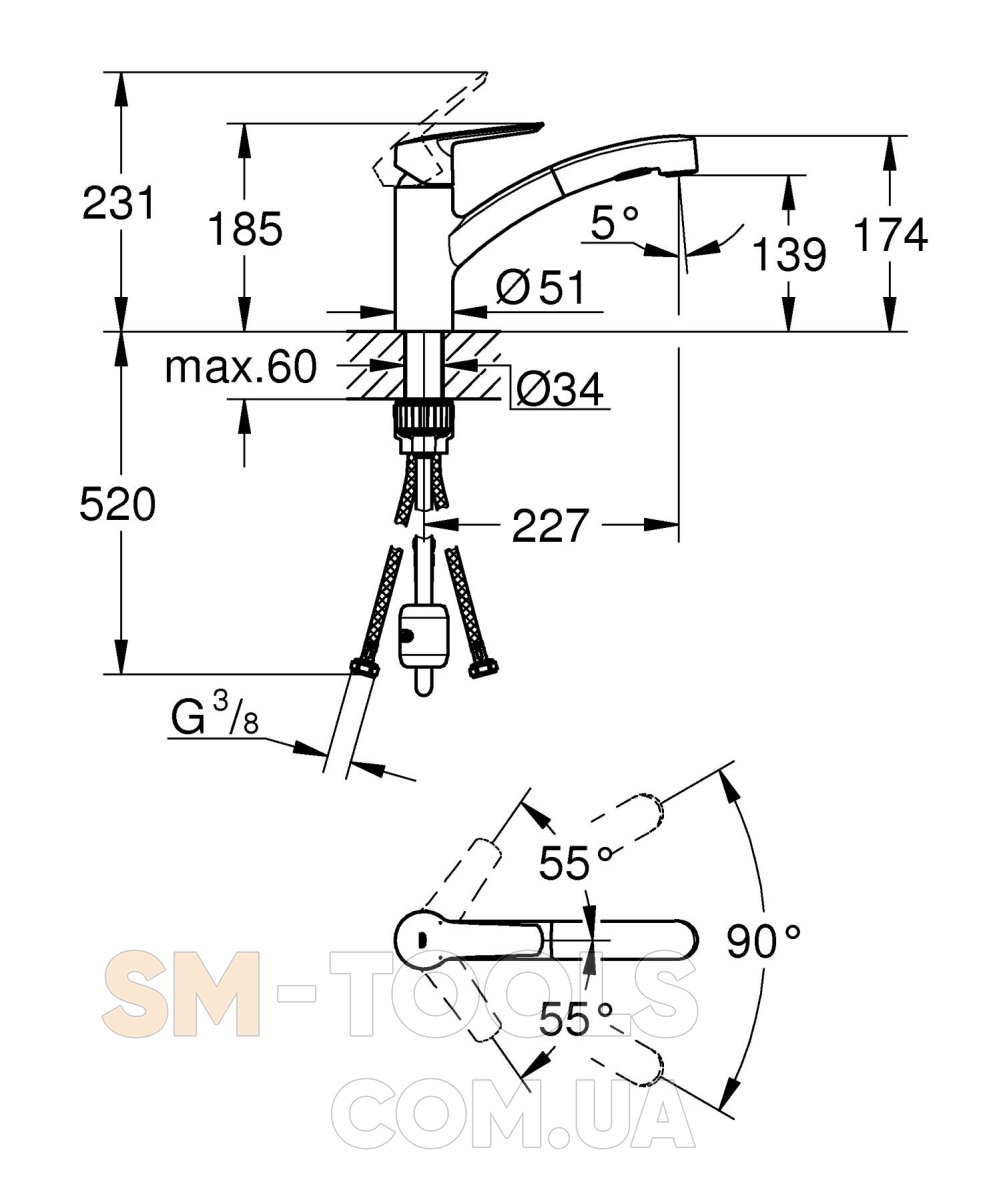 Характеристики Однорычажный смеситель для мойки Grohe QuickFix Start