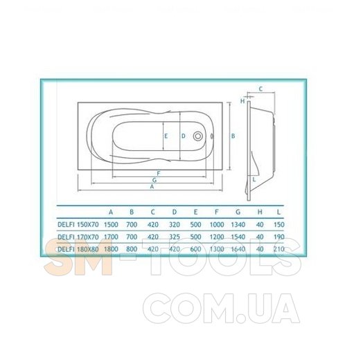 Розмір ванни: 160x70