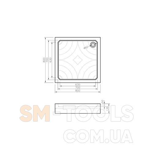 Поддон Koller Pool Grace акриловый 80x80, квадратный (GRACE80S)