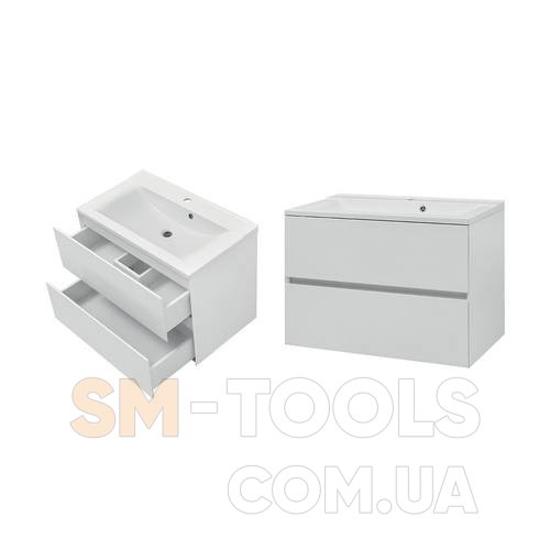 Тумба підвісна NEON CUBE 80 см (біла) з меблевим умивальником. (NC800BLP)