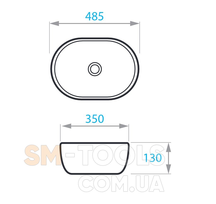 Описание Умывальник KOLLER POOL серии ROUND на столешницу 485х350 мм (RN-0485-WB)