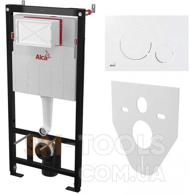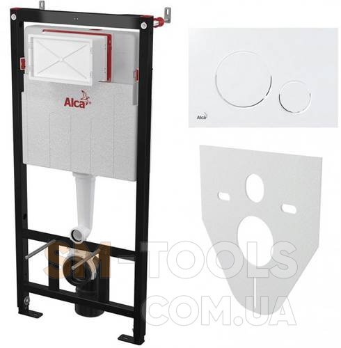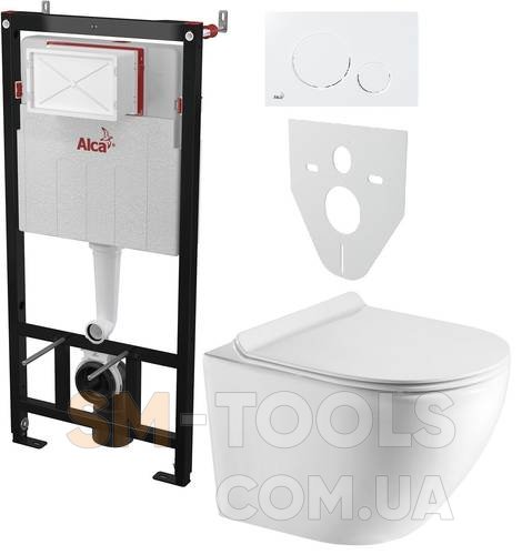 Инсталляция AlcaPlast 4в1 AM101/1120 с белой круглой кнопкой M670 + подвесной унитаз ROUND SMART (AM101/1120-4:1 UA M670-0001 + RN-0490-RW)