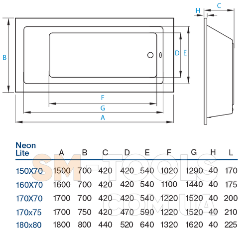 Ванна Neon Light має елегантні, класичні форми, які припадуть до смаку любителям мінімалістичного стилю. Чіткі рівні лінії та сучасний стиль ванни Neon Light стануть чудовою прикрасою інтер'єру вашої ванної кімнати. Верхня частина внутрішнього простору ванни прямокутна і повністю повторює зовнішні риси ванни, що дає можливість максимально використовувати простір як для прийняття ванни, так і душа. Додатково ванну можна укомплектувати шторкою.