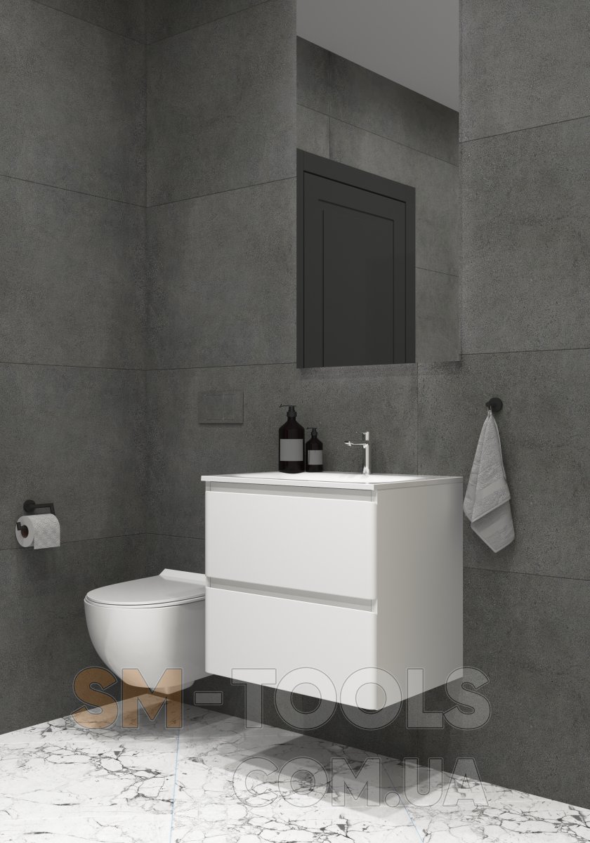 Колекція меблів TREND – консольна тумба з шухлядами плавного типу закривання. Умивальник - литий мармур. Можлива ширина тумби: 60 / 80 / 90 / 100 см. Колір білий.