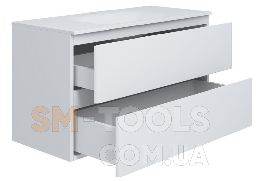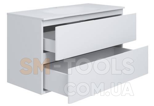 Колекція EDGE NEW - тумба підлогова біла з умивальником з шухлядами плавного типу закривання. Умивальник - литий мармур. Доступна ширина тумби: 60 /70 / 80 / 90 / 100 см. Колір білий.