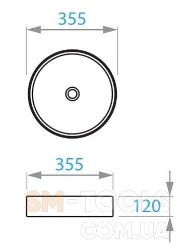 Накладна, кругла керамічна раковина Round Arc RN-0355-WB має габаритні розміри (ВхШхГ) 12 х 35.5 х 35.5 см, тонкі стінки та рівномірний матовий чорний колір.