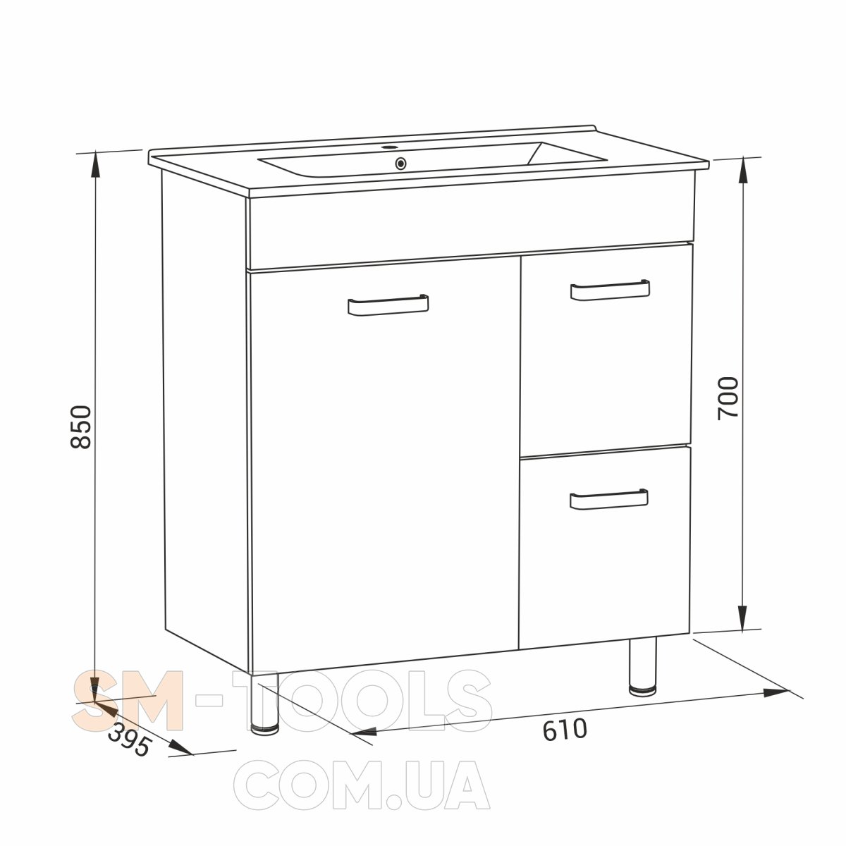 Комплект поставки: тумба под умывальник, умывальник, ножки