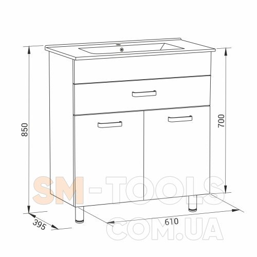 Комплект поставки: тумба под умывальник, умывальник, ножки