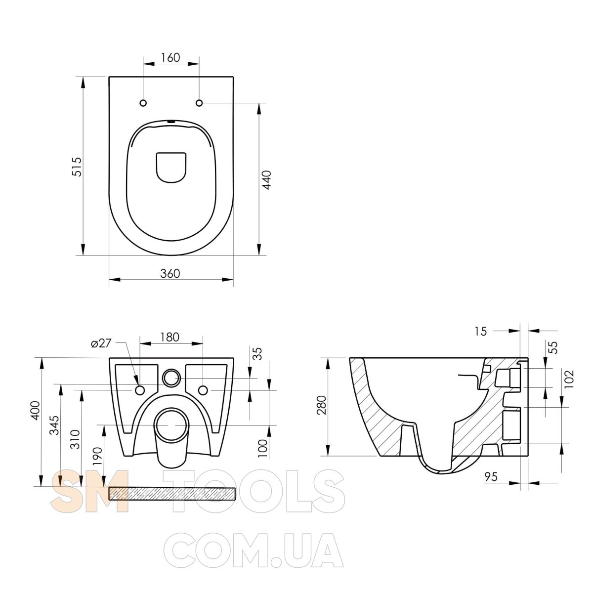 VIRGO унітаз-біде підвісний, Rimless розмір 515*360*320мм В комплекті сидіння тверде Slim slow-closing