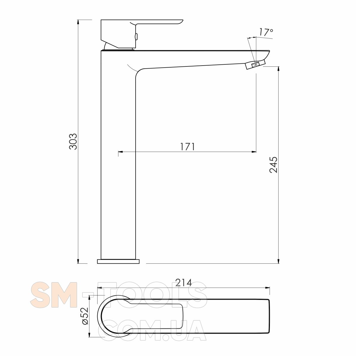 Высота смесителя, мм: 303