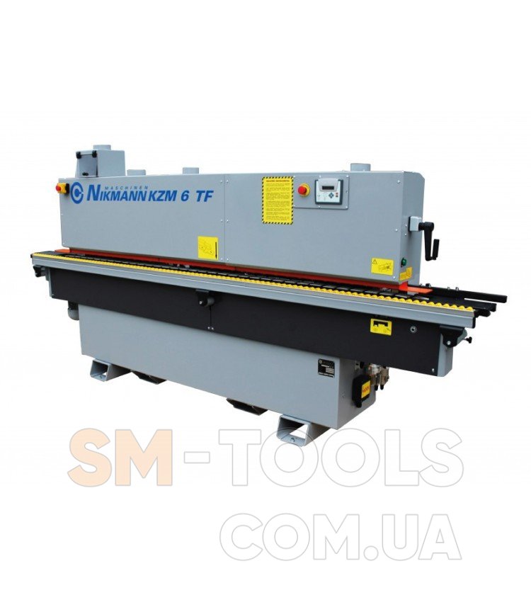 Автоматический кромко-облицовочный станок KZM 6 TF5 предназначен для облицовывания прямолинейных кромок плитных материалов рулонными кромками АБС, ПВХ и полосовым кромочным материалом толщиной до 3 мм.