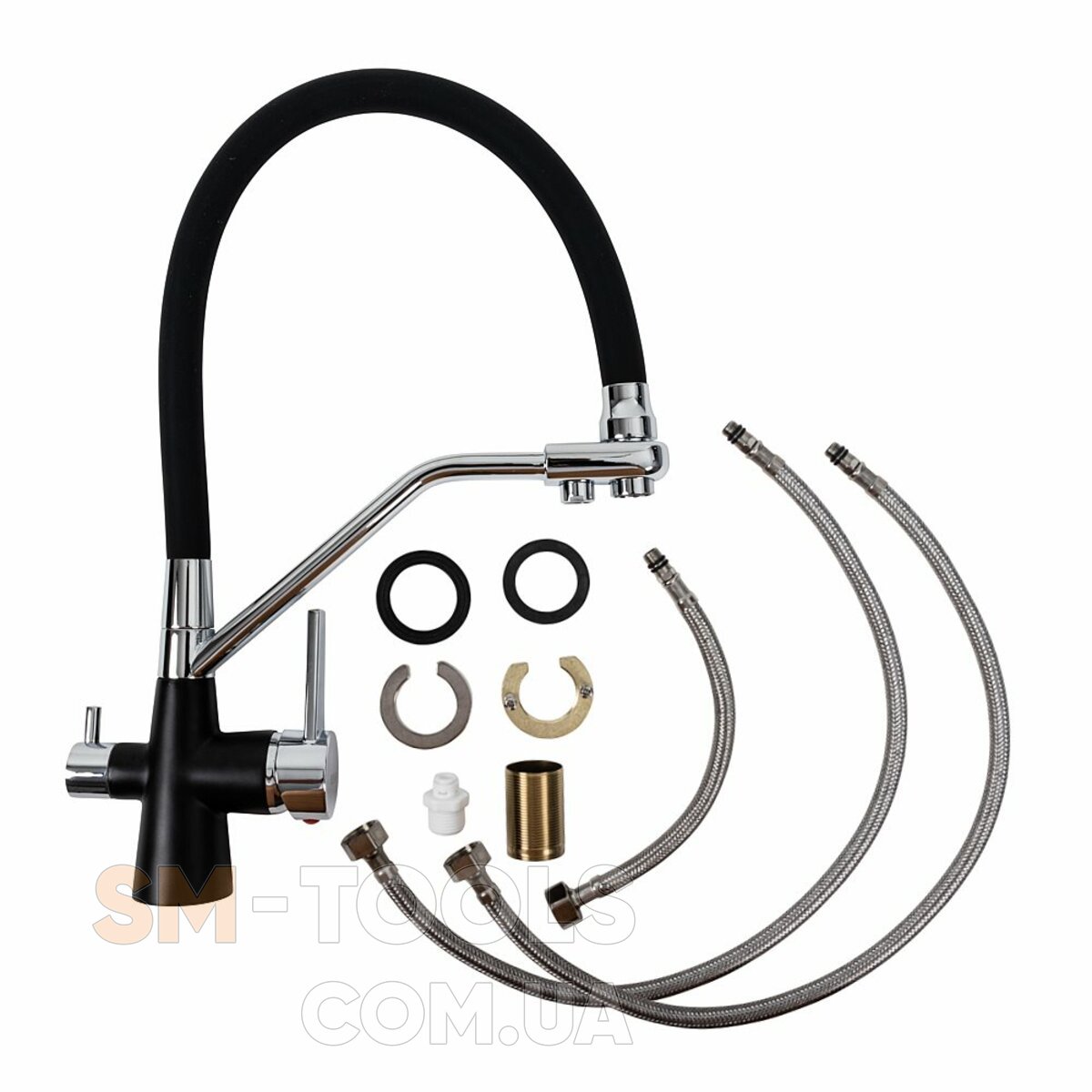 Смеситель кухонный Platinum LN077 с гибким черным гусям - это инновационный и стильный прибор, который привносит удобство и функциональность в вашу кухню. Этот смеситель отличается чрезвычайным вниманием к деталям и высоким качеством изготовления.