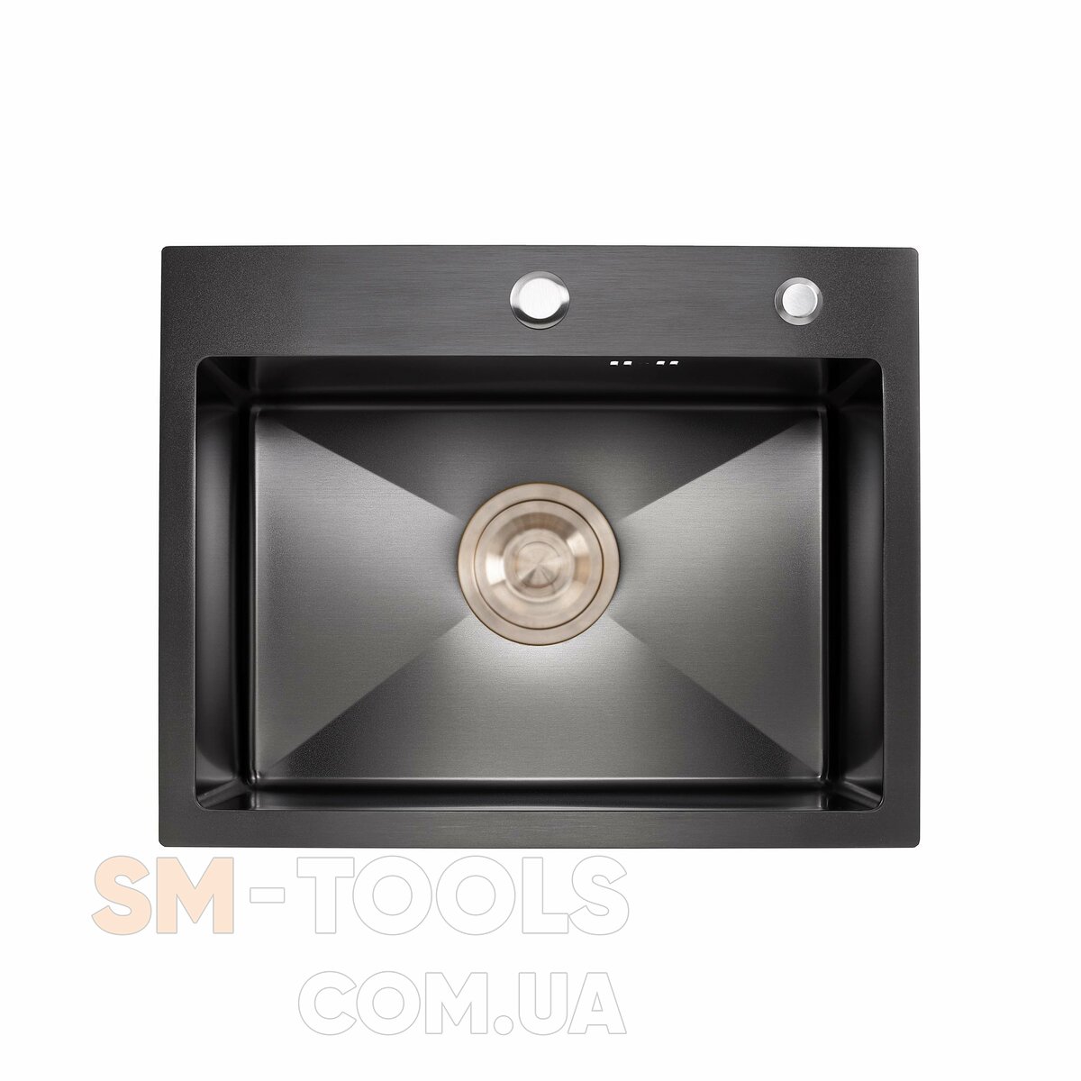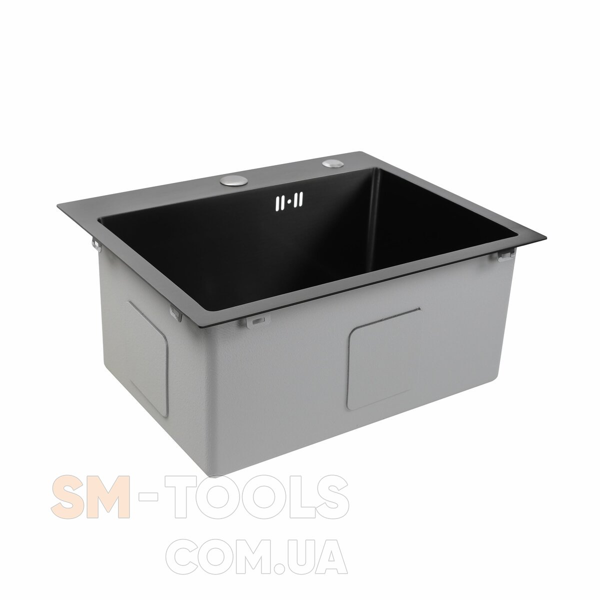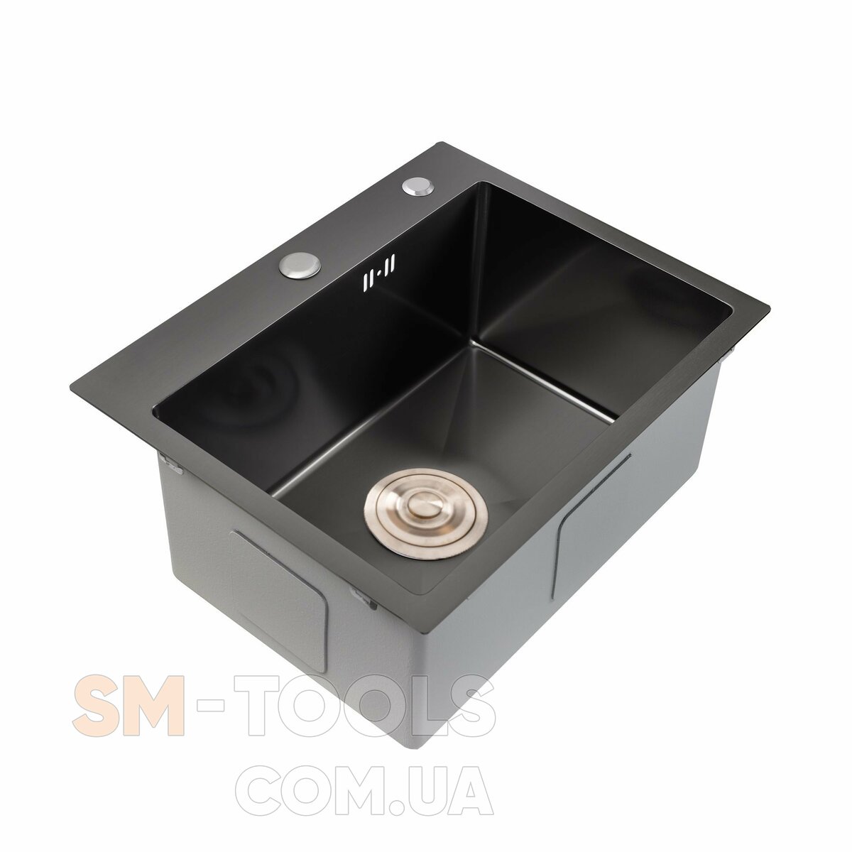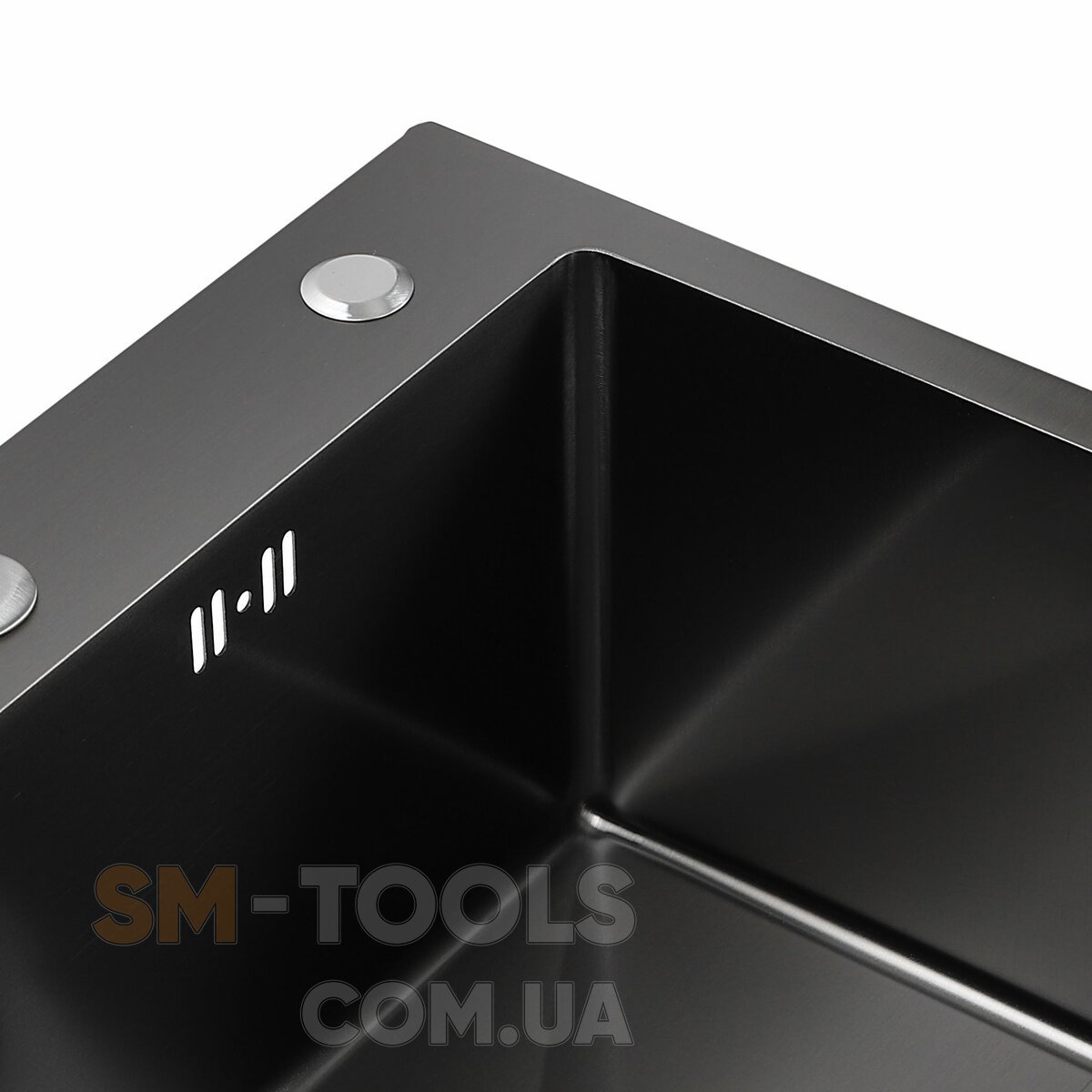 Кухонная мойка 50*45 PVD черная Platinum Handmade (сифон круглый черный, 3,0/0,8)