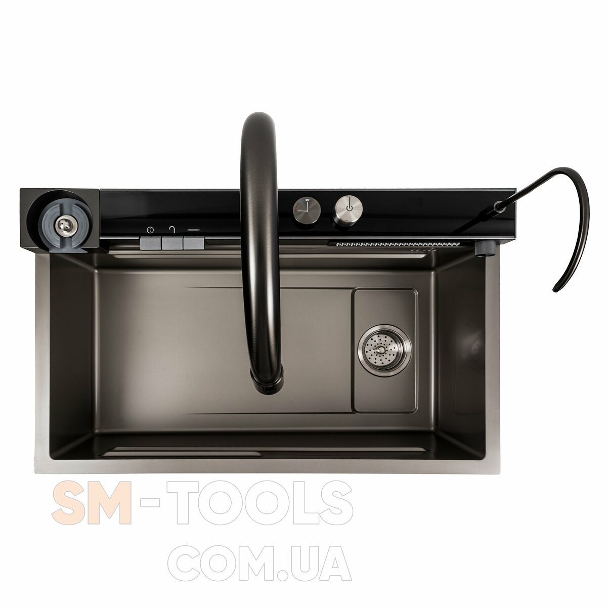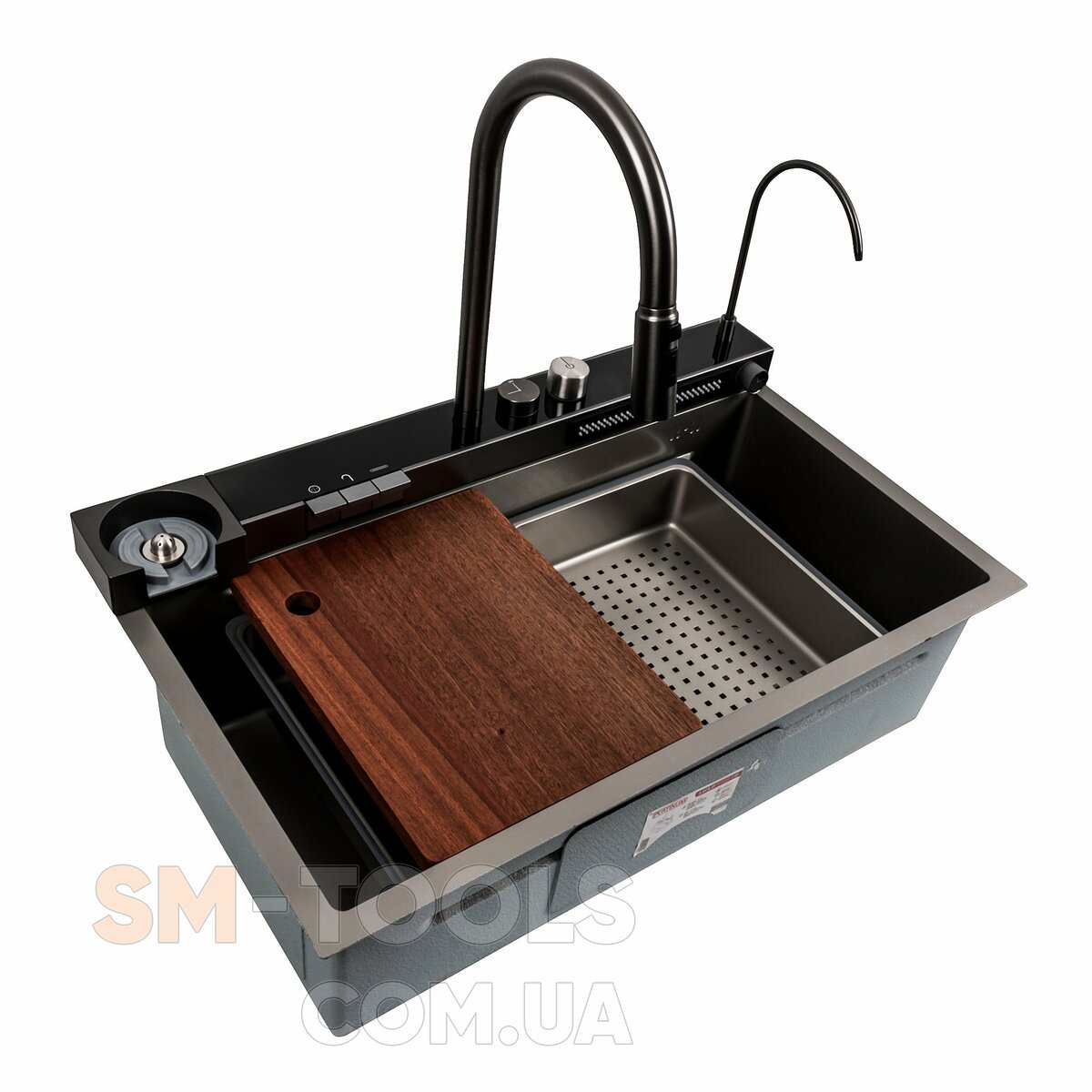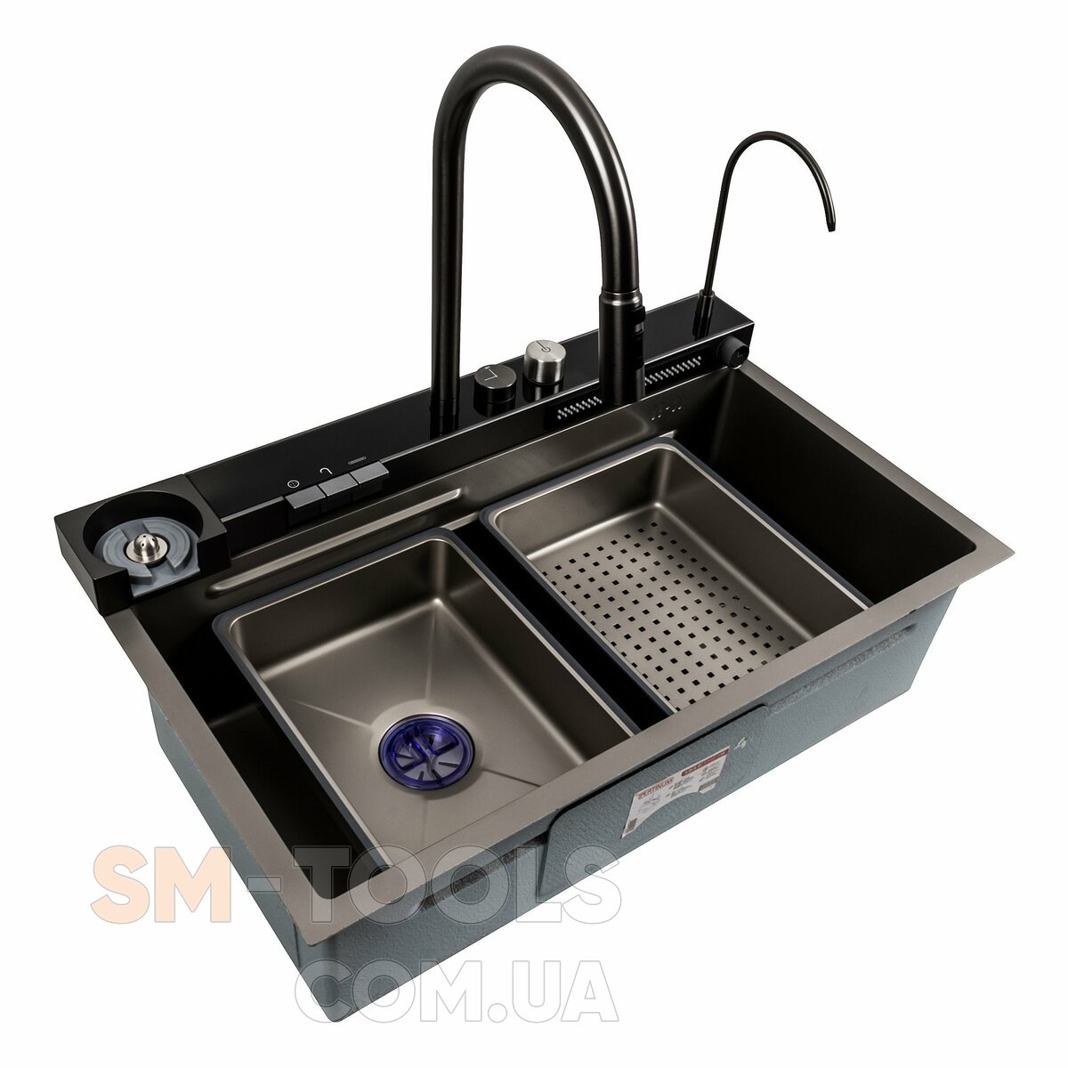 Кухонная мойка 75*46D PVD серая Platinum Handmade "ВОДОСПАД"