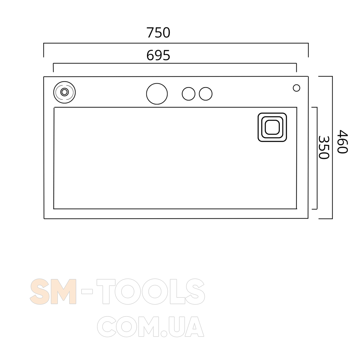 Размер мойки (ШхГхВ), мм: 750х460х210