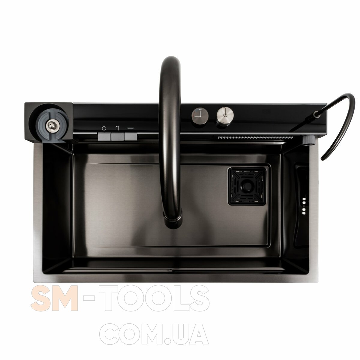 Кухонная мойка 75*46D PVD черная Platinum Handmade "ВОДОСПАД"