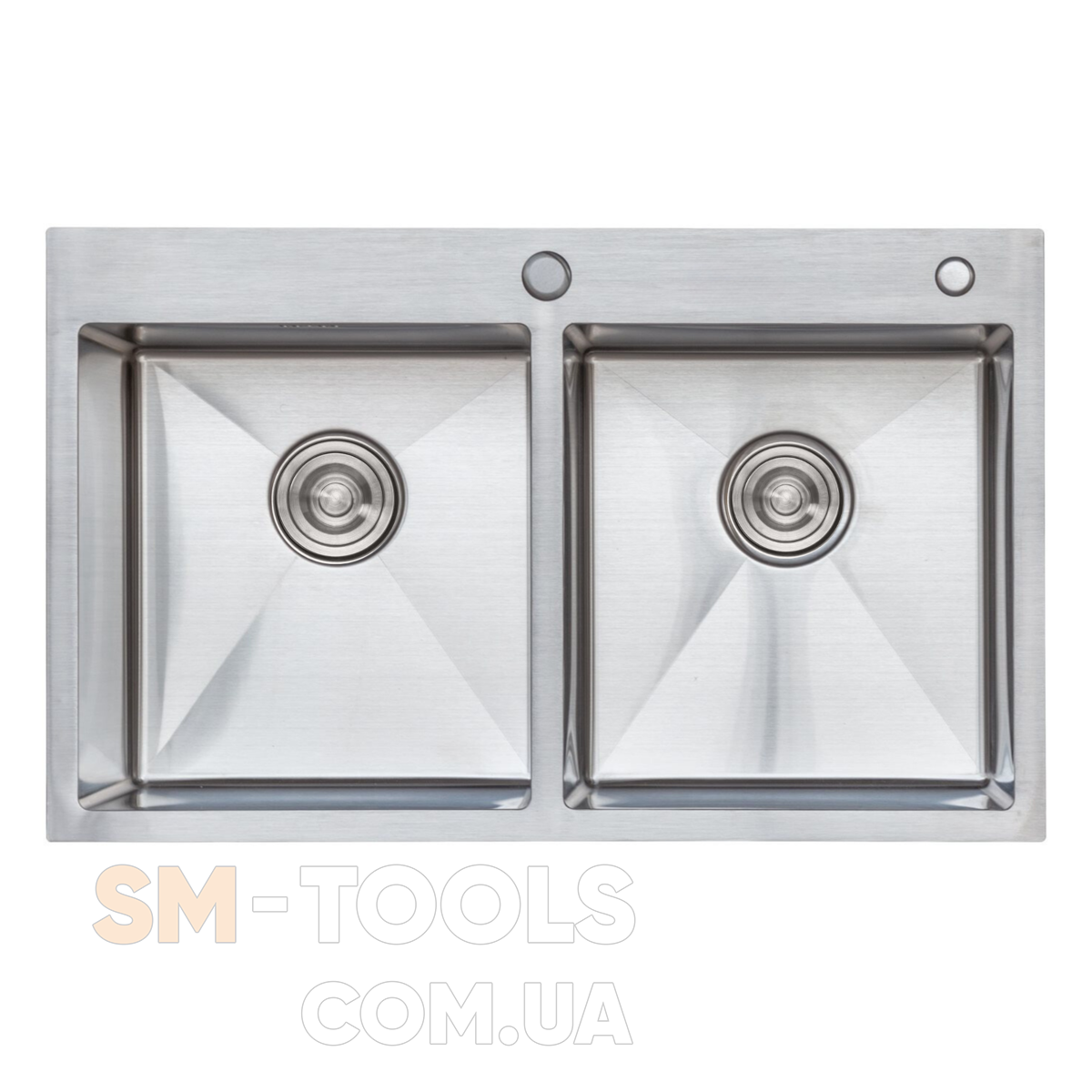 Кухонная мойка 78*48 нержавейка на две чаши Platinum Handmade (круглый сифон, 3.0/0.8)