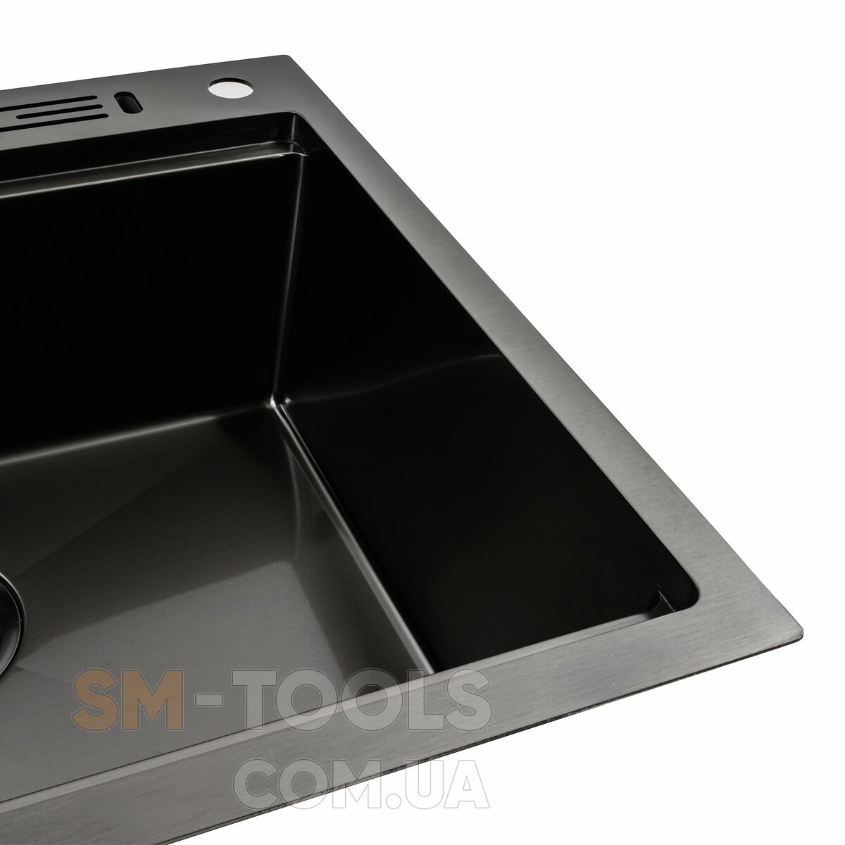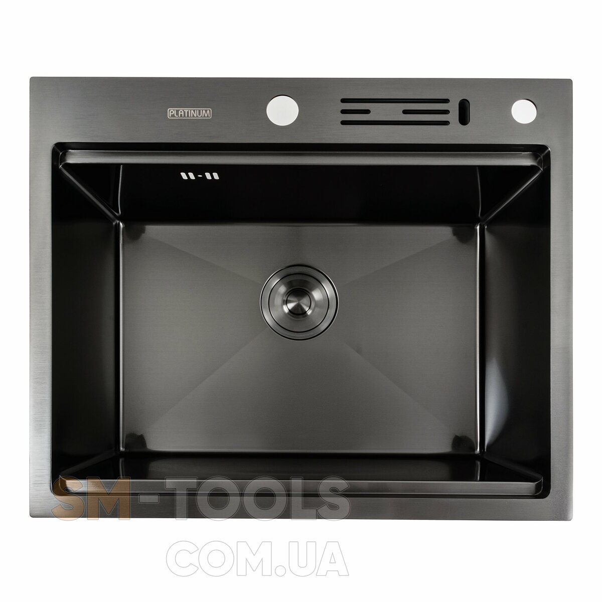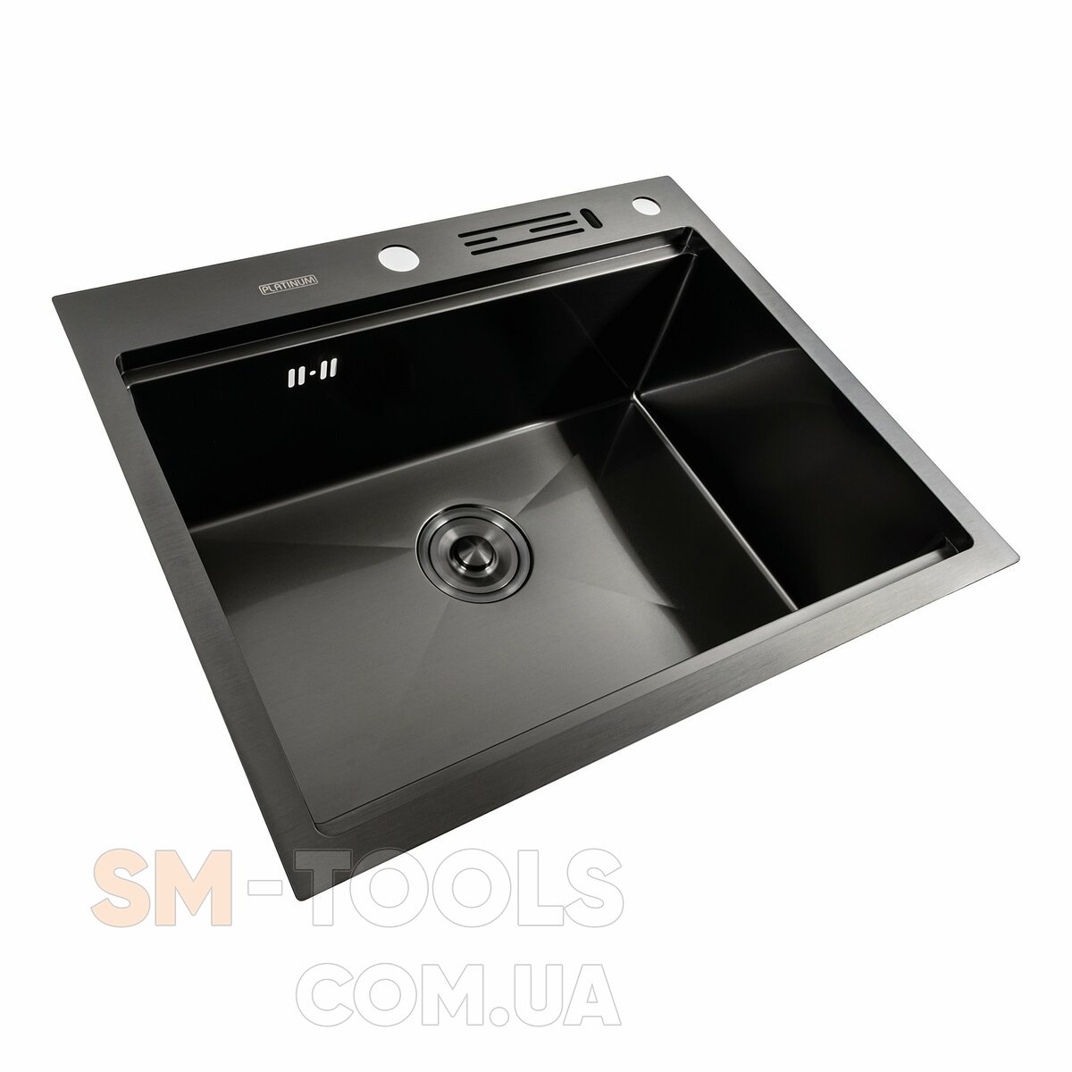 Кухонная мойка черная PVD 60х50 Platinum Handmade с подставкой для ножей (сифон круглый, 3,0/0,8)