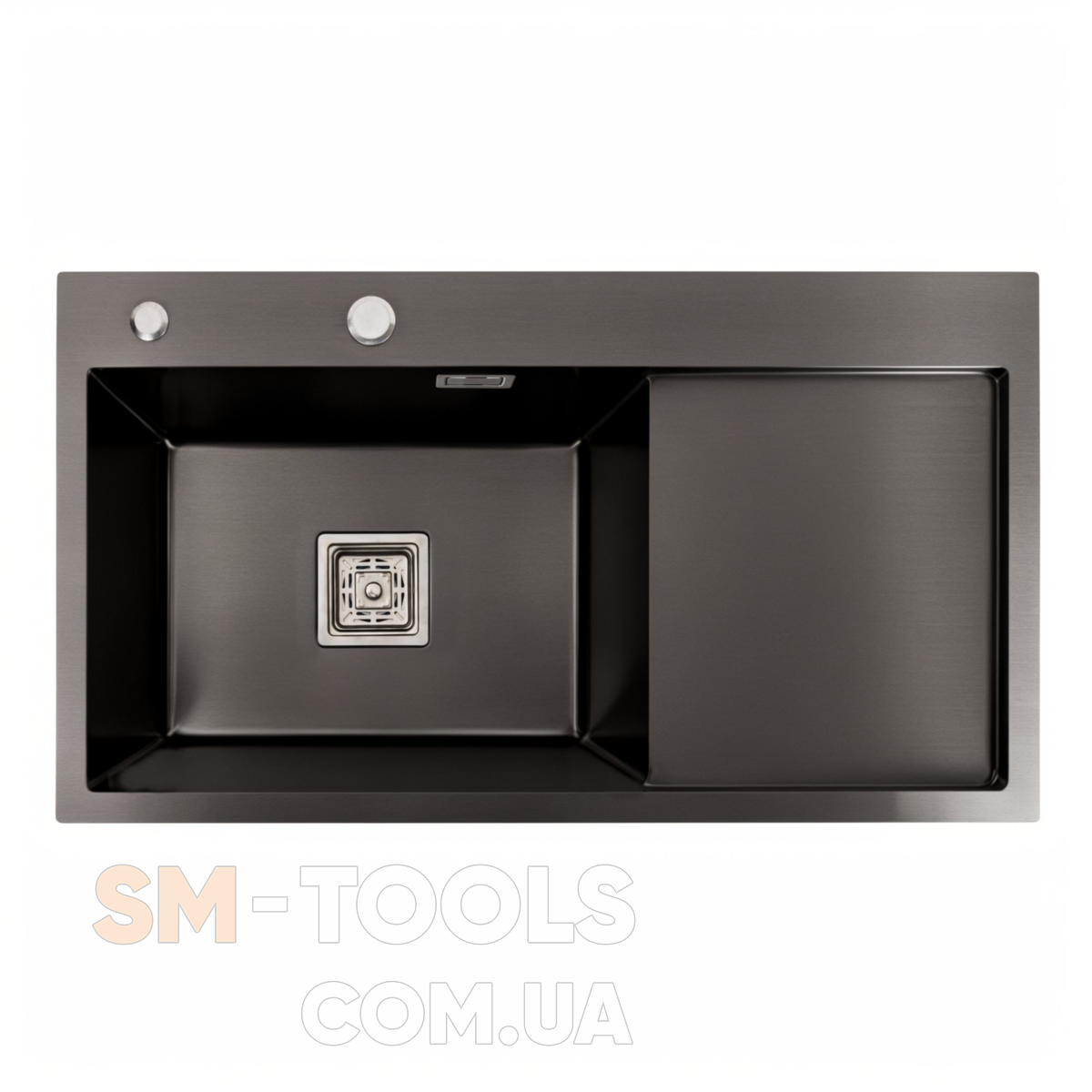 Мойка PVD Platinum Handmade 780x430x220 L черная (квадратный сифон, 3.0/1.0)