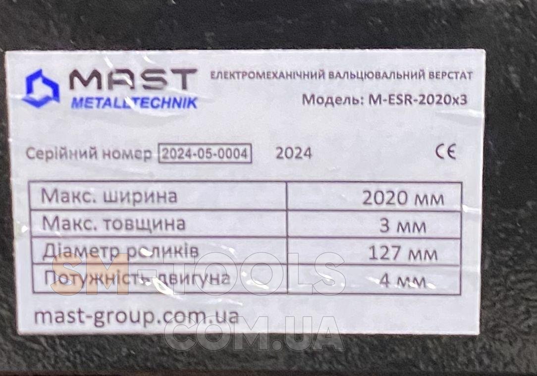 Вальцовочный станок MAST Metalltechnik M-ESR-2020x3.0 400V