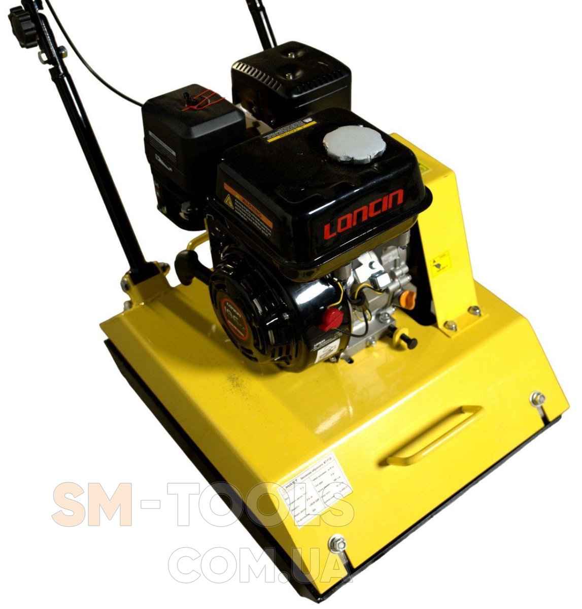 LONCIN с мощностью 4,4 кВт и воздушным охлаждением обеспечивает стабильную и производительную работу. Виброплита совершает 5500 ударов в минуту. Выполнение движения вперед со скоростью 20 м/мин. Размер плиты – 600х450 мм.