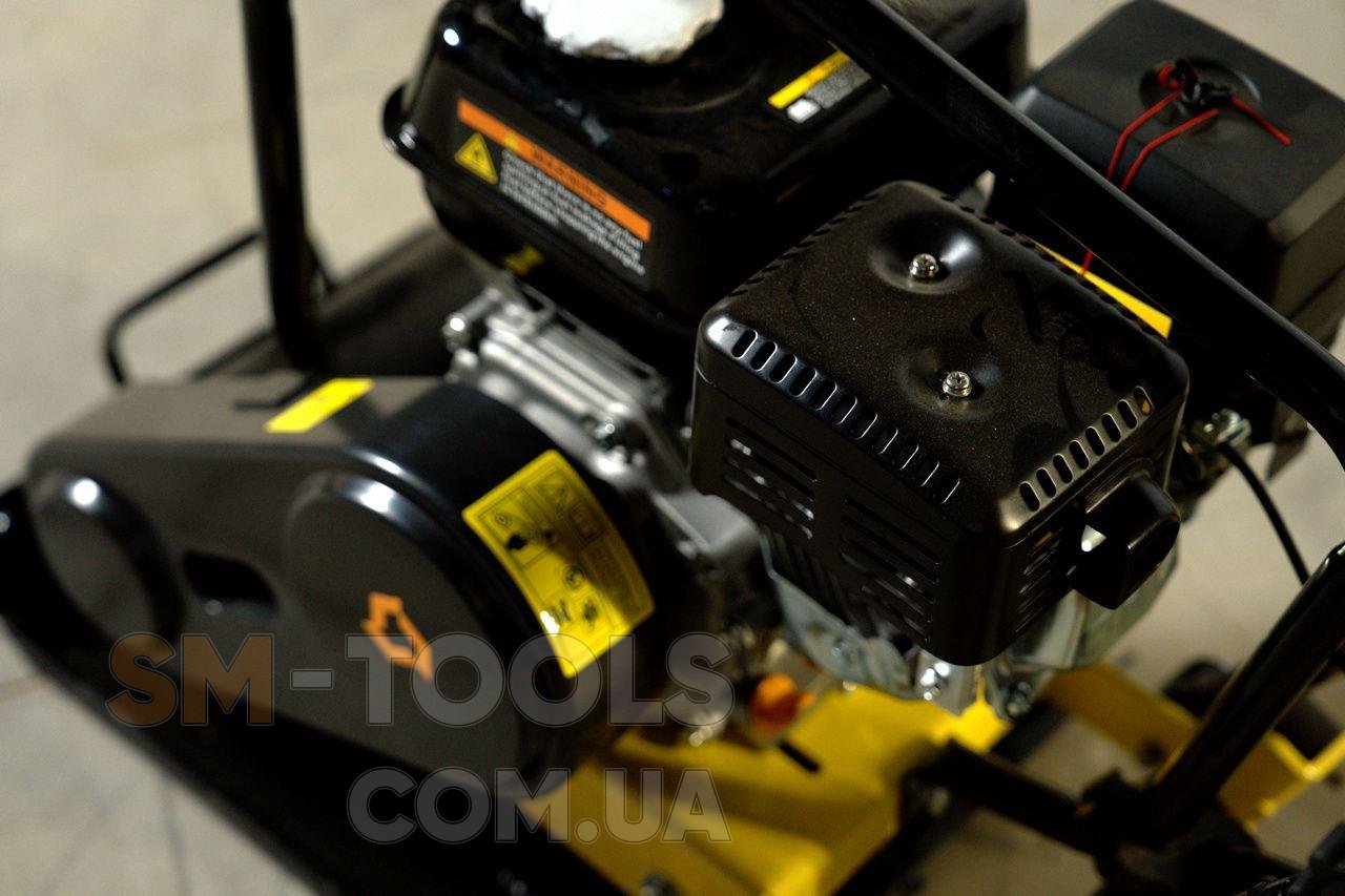 Оборудование изготовлено из высококачественных, износостойких материалов, что гарантирует длительный срок службы. Компактный размер, небольшой вес и эргономичная ручка для управления обеспечивают удобство использования виброплиты.