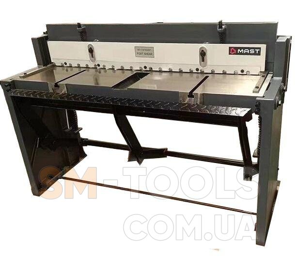 Ограничитель глубины подачи модели MAST Q01-1.5x1320 имеет миллиметровую линейку. Перемещение упора бесступенчатое. Это позволяет точно задавать размер необходимой заготовки. Ход режущего ножа под углом около 5?. Этим достигается плавность реза и снижение усилий, необходимых для осуществления раскроя. Автоматическое эффективное прижимное устройство для фиксации листового металла перед резкой. Движение режущей балки отражается за счет педального механизма. Подъем режущей балки производится пружинами. Простота конструкции обеспечивает долговечность станка.