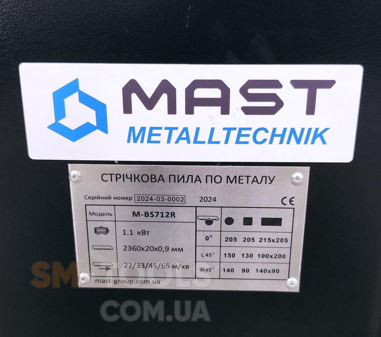 Ленточная пила по металлу MAST Metalltechnik M-BS712R 400V