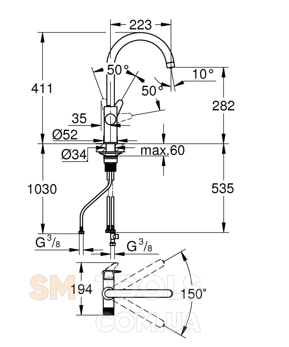 Характеристики Смеситель для кухни для подачи технической и фильтрованной воды Grohe Blue Pure StartCurve (30592000):