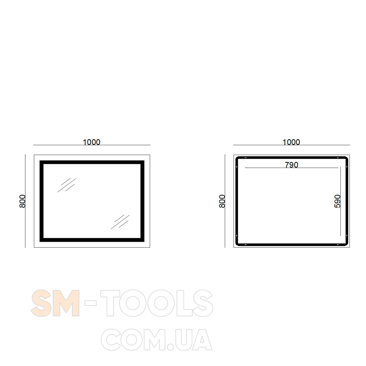 Размер, мм : 1000x800< br />Расположение подсветки : Внутри полотна по периметру
