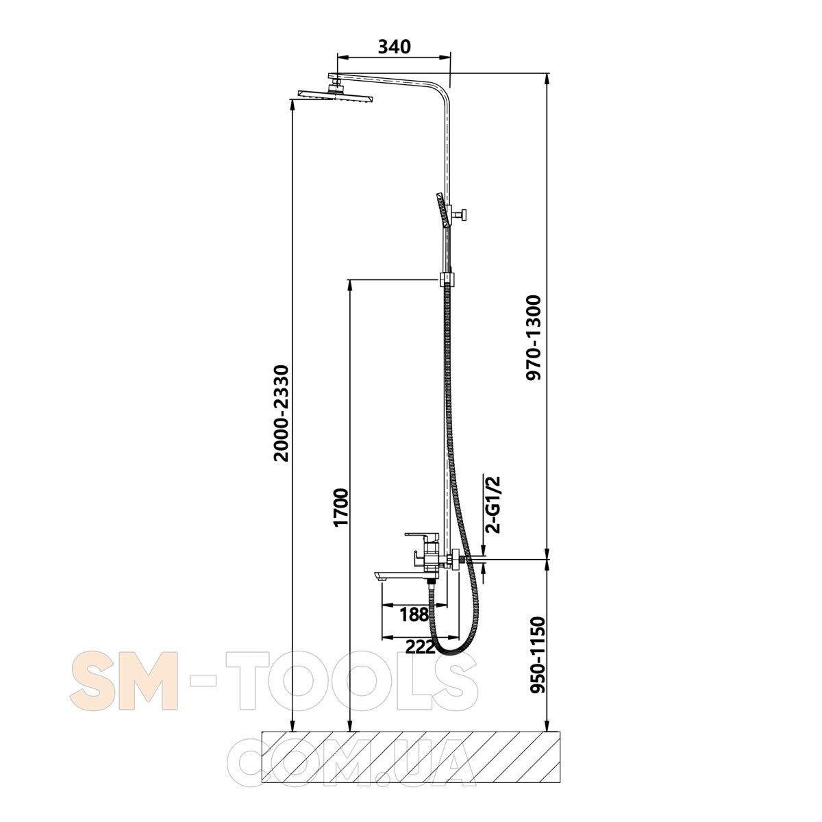 Характеристики Душевая система универсальная Lidz Dozorca 1030 на три потребителя (с изливом) (k35) Бренд: Lidz