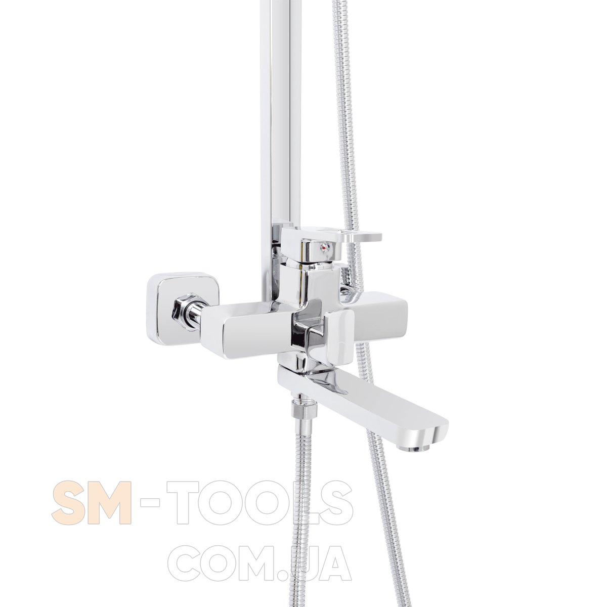 Комплектация : Смеситель, кронштейн для верхнего душа, воронка для верхнего душа, кронштейн для ручного душа, воронка для ручного душа, душевой шланг , душевая стойка, крепеж.