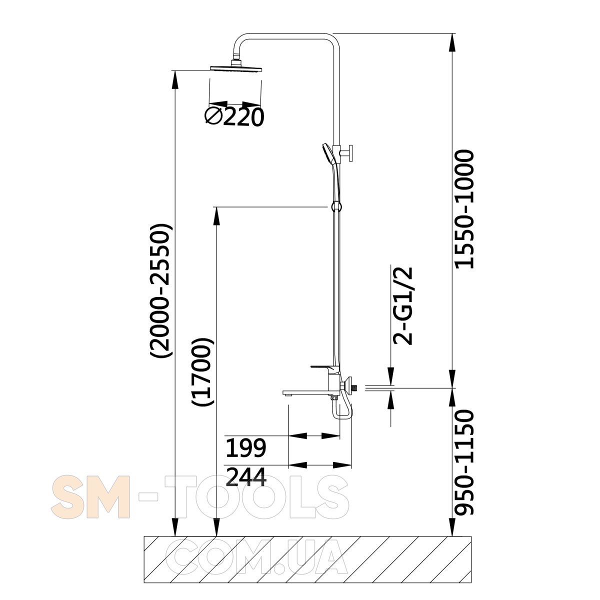 Характеристики Душевая система универсальна Qtap Jay на три потребителя (с изливом)