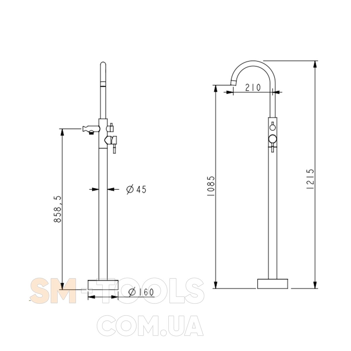 Смеситель для ванны Lidz Aria 004 напольный (с душевым гарнитуром) (k35) LDARI004NKS46099 Nickel