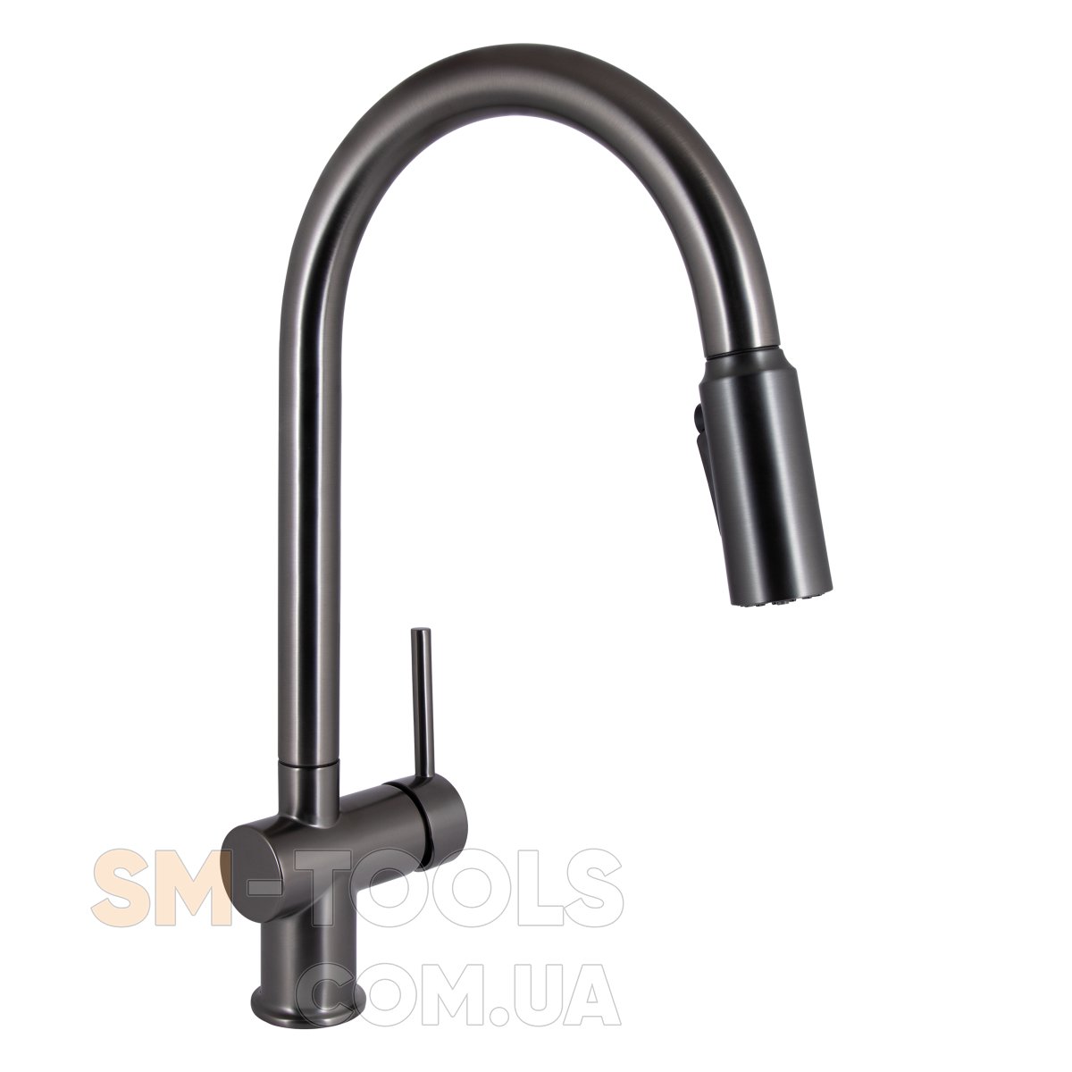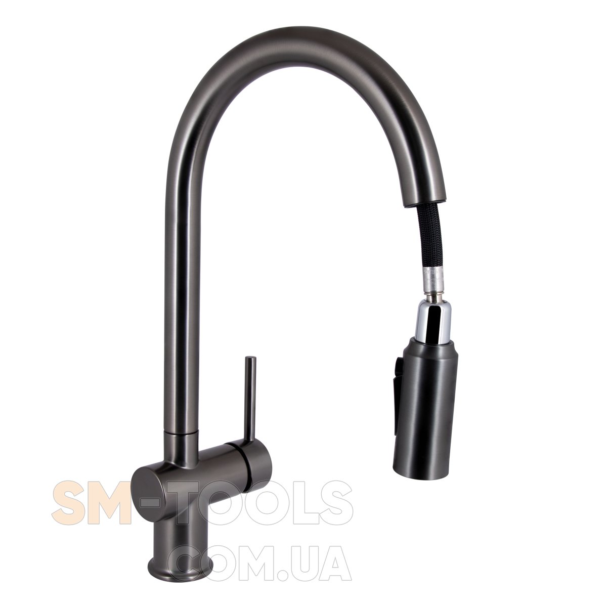 Смеситель для кухни Qtap Rozcesti с выдвижным изливом с подключением для питьевой воды QTROZ366GMB45939 Gunmetal Black PVD