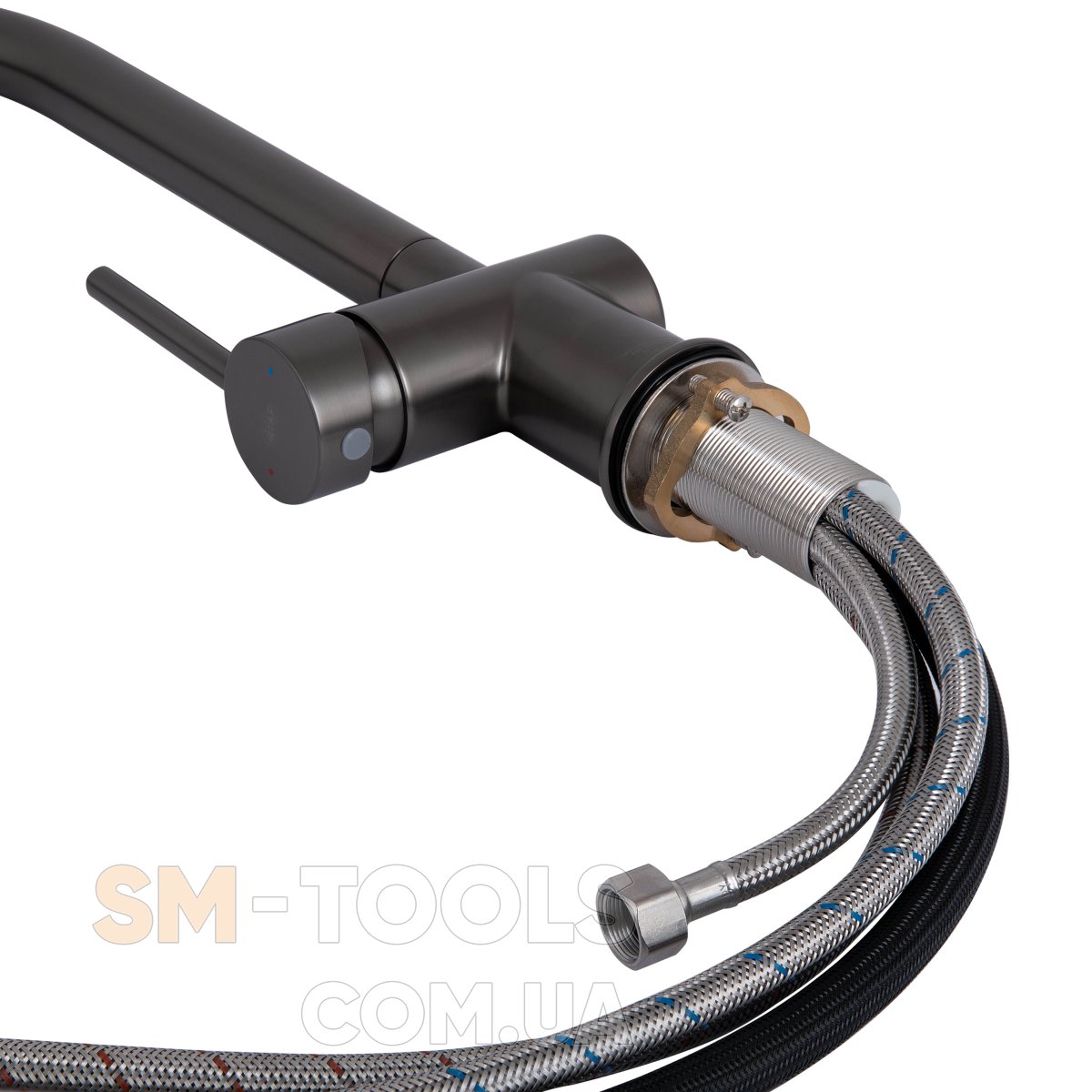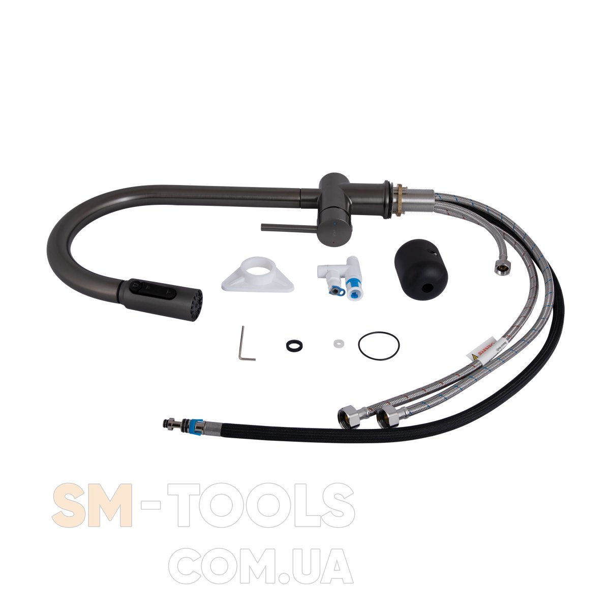Опис Смеситель для кухни Qtap Rozcesti с выдвижным изливом с подключением для питьевой воды QTROZ366GMB45939 Gunmetal Black PVD