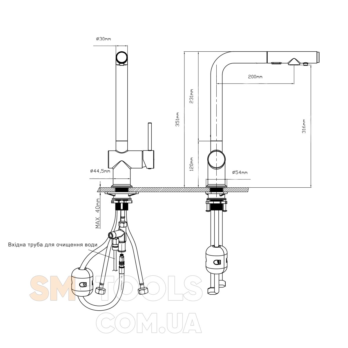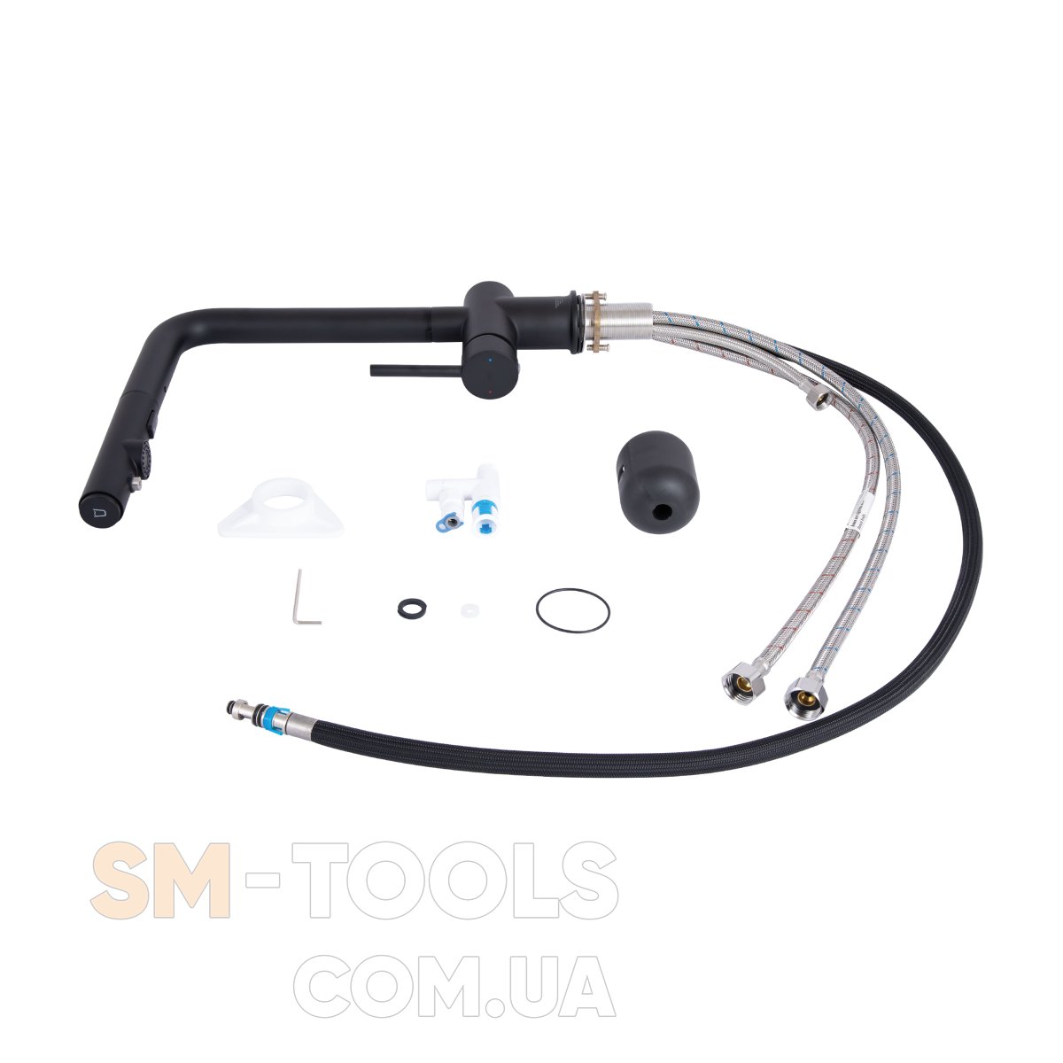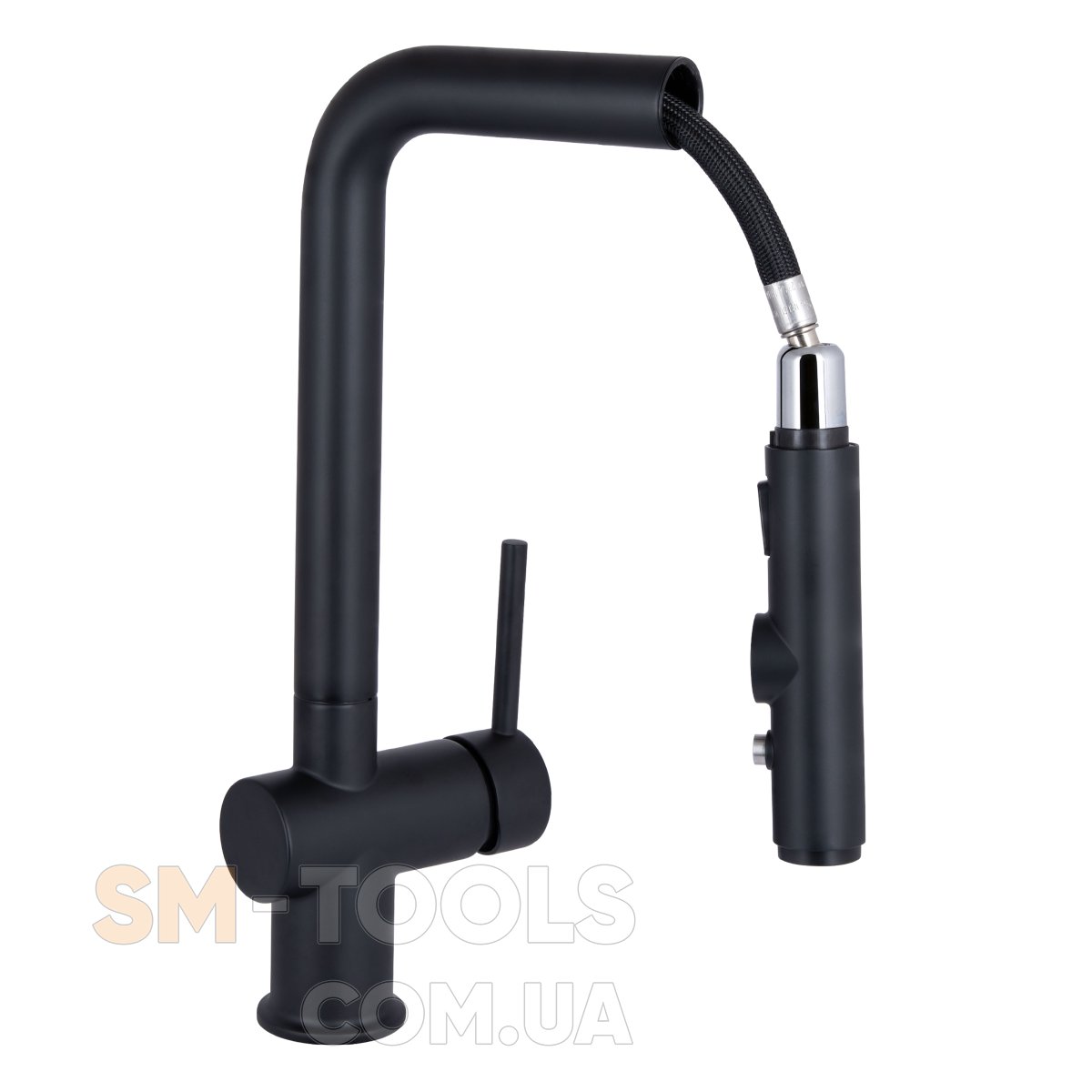 Смеситель для кухни Qtap Rozcesti с выдвижным изливом с подключением для питьевой воды QTROZ367BLM45943 Black Matt