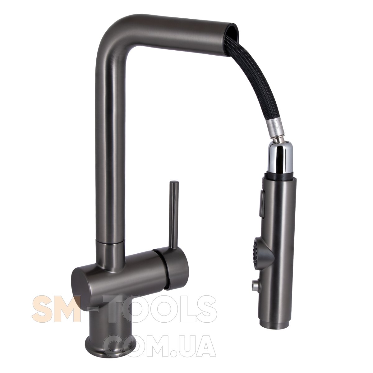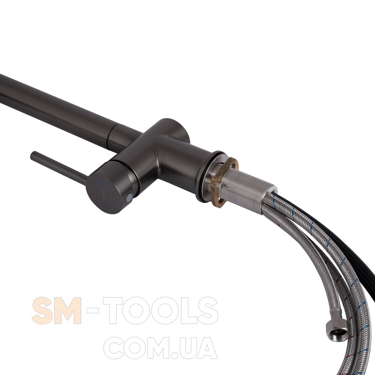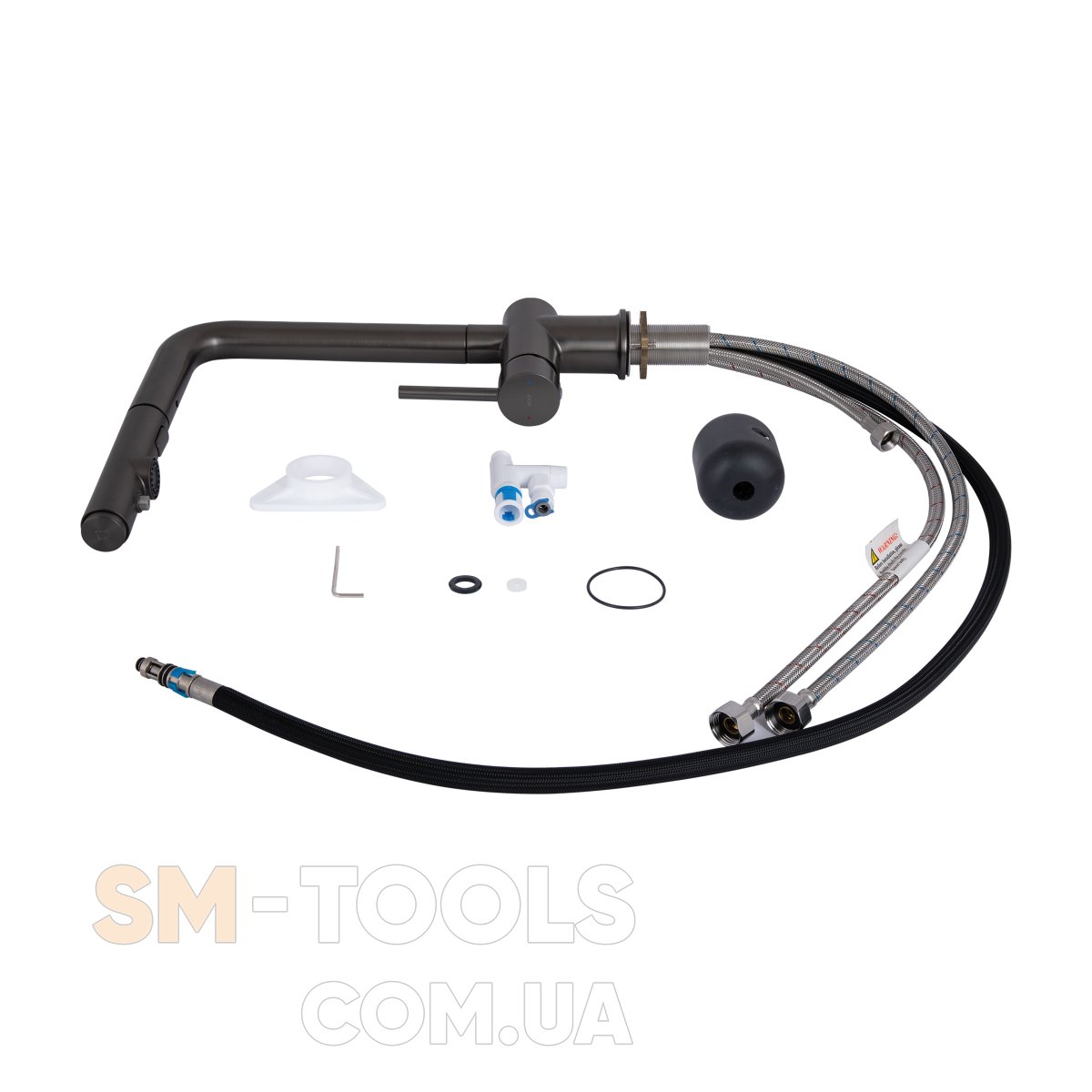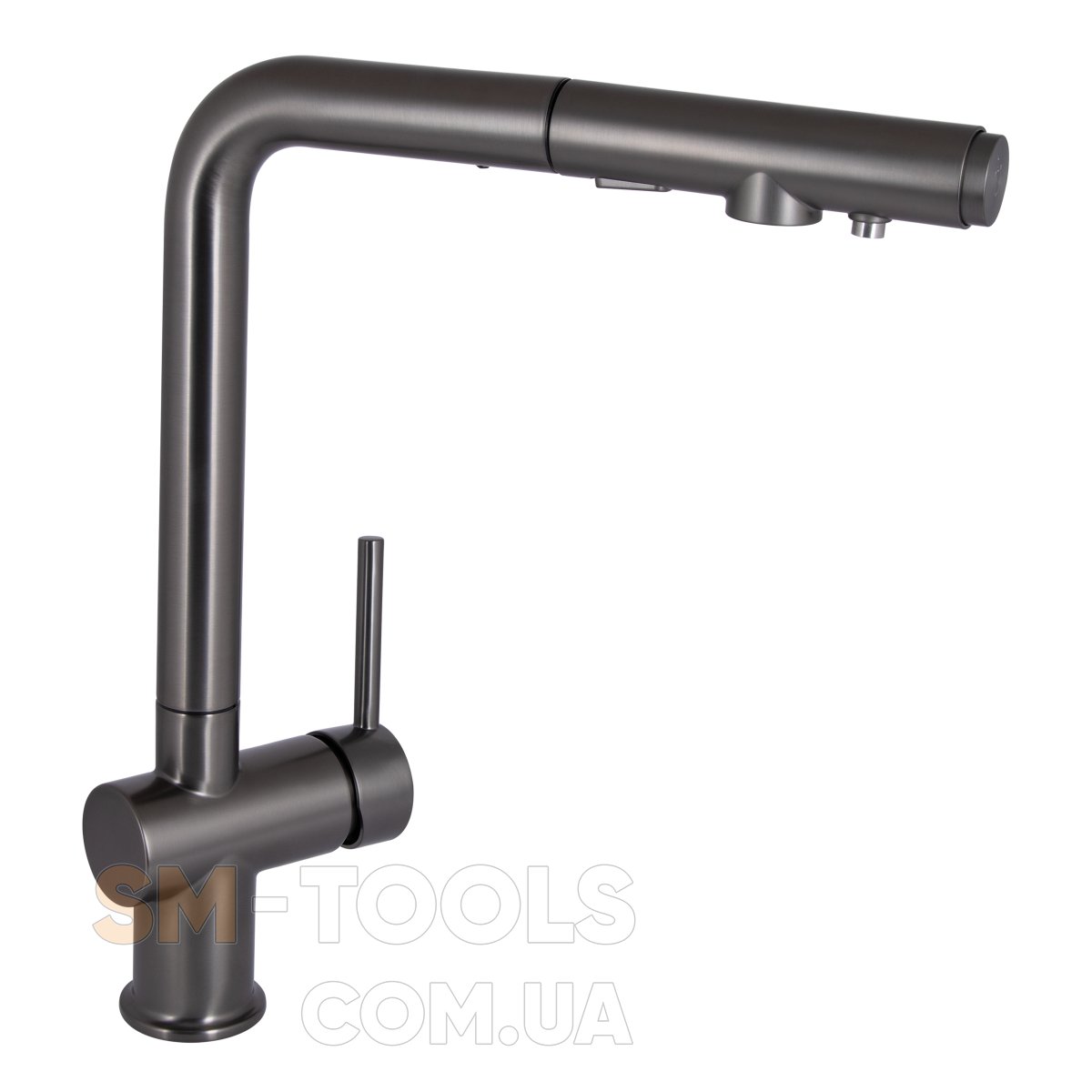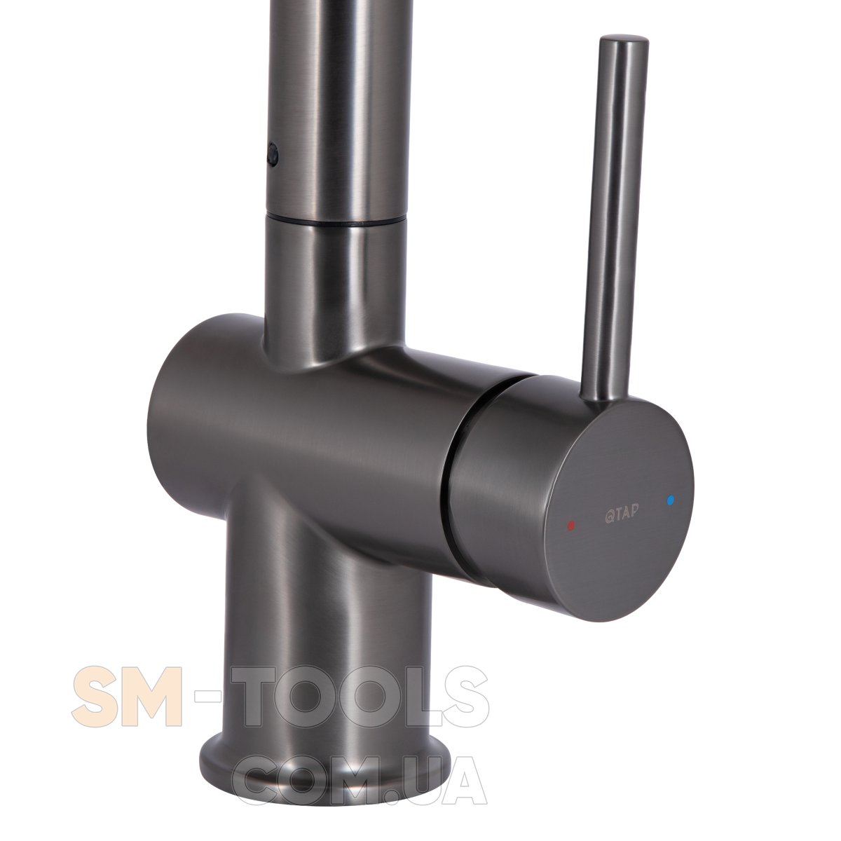 Смеситель для кухни Qtap Rozcesti с выдвижным изливом с подключением для питьевой воды QTROZ367GMB45942 Gunmetal Black PVD