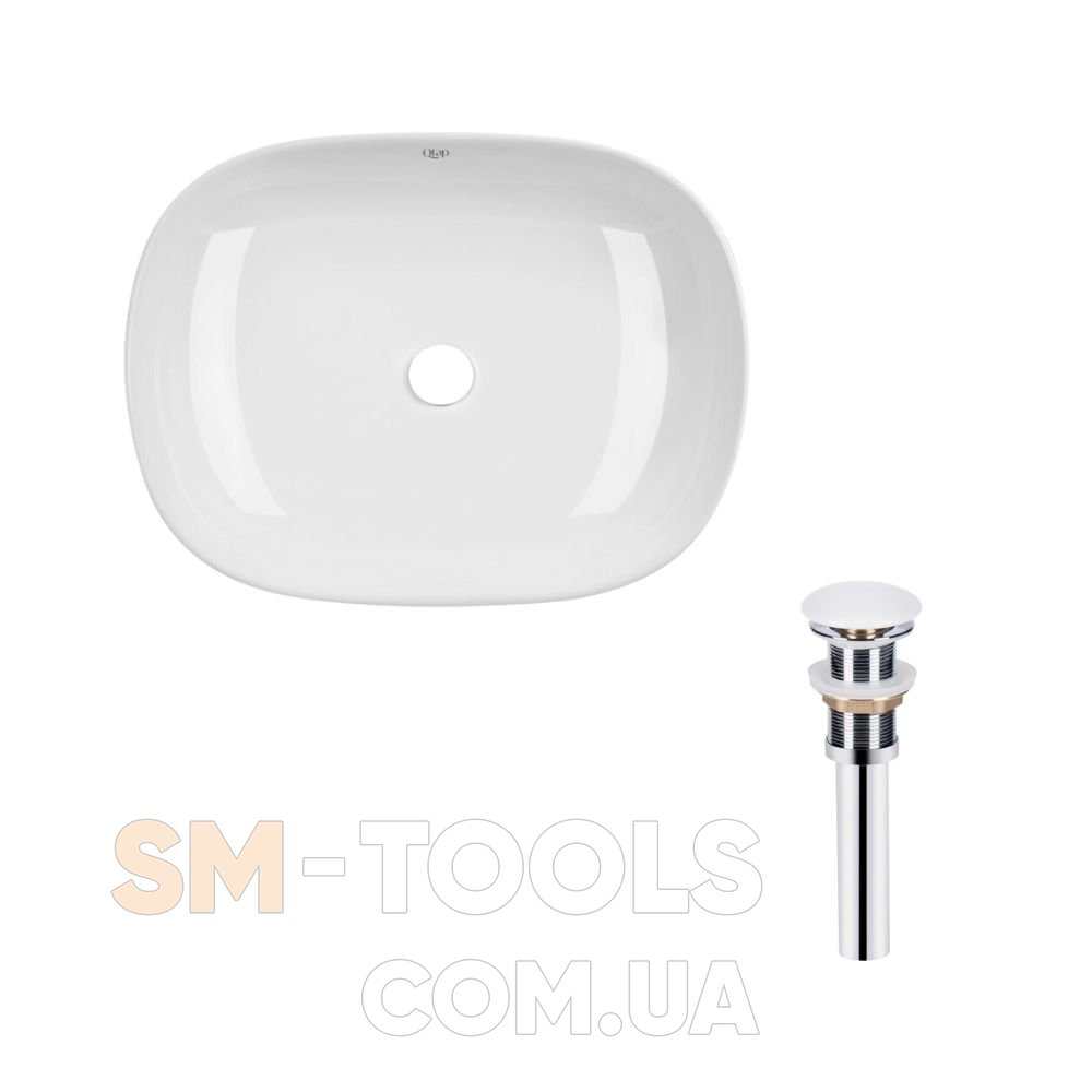 Комплект Qtap Aquarius: Раковина накладная прямоугольная 465x375x115 мм White + Донный клапан PU02
