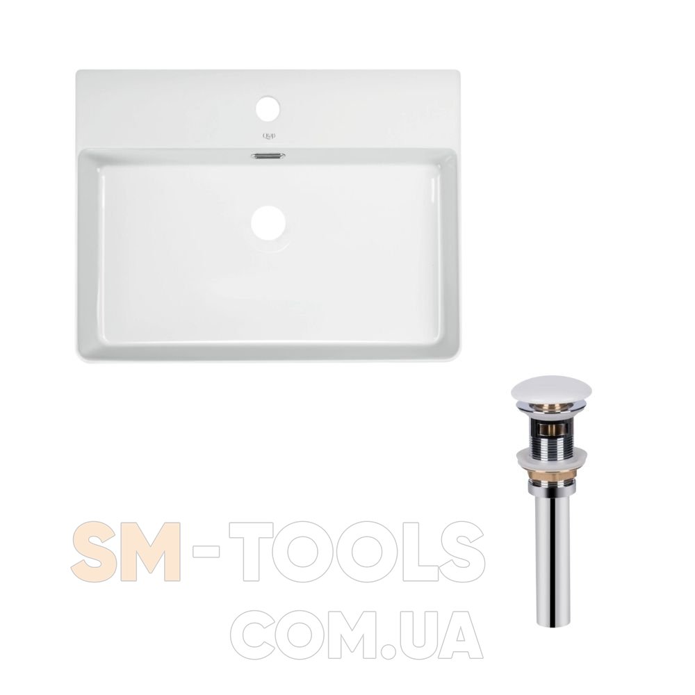 Комплект Qtap Nando LT: Раковина подвесная прямоугольная 600х440х130 мм White + Донный клапан PU02O