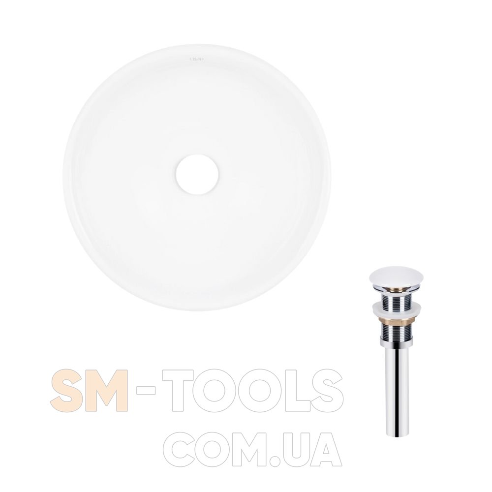 Комплект Qtap Owl: Раковина накладная круглая 400х400х155 мм White + Донный клапан PU02